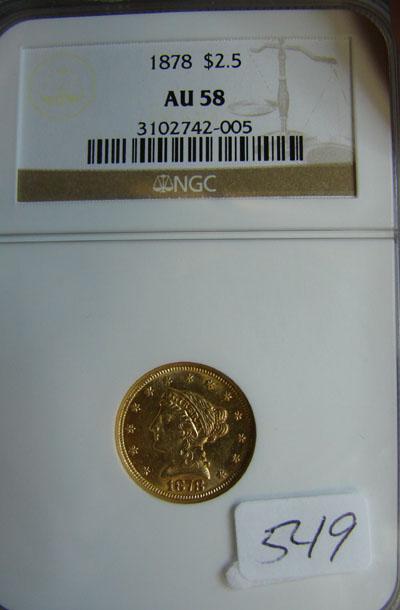 1878 $2.50 Liberty Head Gold Coin NGC AU58