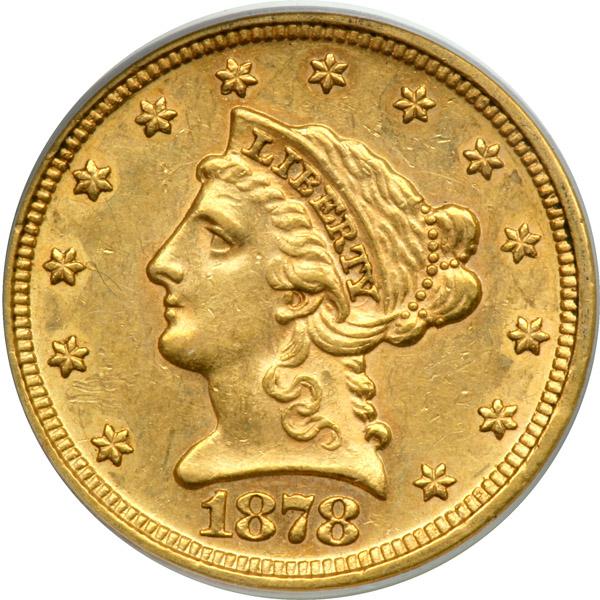 1878. PCGS graded AU-55. Lightly toned (PCGS # 7828) .