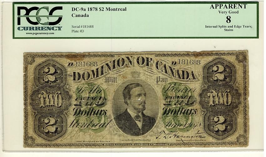 1878 $2 DC-9a #181688 PCGS App VG8 Internal Splits and Edge Tears; Stains