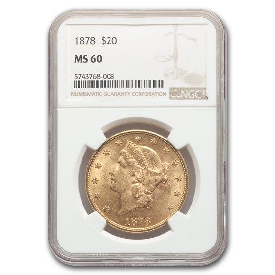 One piece 1878 $20 Liberty Gold Double Eagle MS-60 NGC