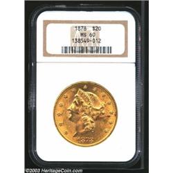 1878 $20 MS60 NGC. The lower right reverse is minutely die doubled, a feature most observable on...