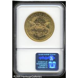 <B>1878 $20 MS62 NGC.</B></I> Satiny fields accentuate the lightly abraded surfaces which one would expect from a Twenty in this grade. A few alloy spots are mentioned on the reverse. Population: 135 in 62, 29 finer (12/04).<BR><I>From The Richard J. Chouinard Collection of United States Coins, Part Two.</B></I> Lot:9148