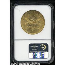 <B>1878<$20> MS62 NGC.</B></I> An attractive and early Type Three Double Eagle. The piece shows rich, though slightly subdued luster and a solid strike with just a hint of softness in the upper hair of Liberty. Minimal surface marks for the grade are present but are not significantly distracting to the overall appearance of the coin. A pleasing example of this lower mintage Philadelphia issue that still shows considerable eye appeal. <BR><BR><B>Important notice:</B> Heritage usually auctions material at the rate of 200-250 lots per hour. On some occasions eBay Live bid software or the Internet may not be able to keep up with the pace of the auction. We recommend placing a realistic absentee bid now as insurance to avoid disappointment. Occasionally the auctioneer may eliminate or reject an eBay Live bid, and the auctioneer may also reopen a lot after the close of the eBay live bidding (usually because we missed an audience bid), and may reject your bid even if it shows you as the winning bidder. By bidding via eBay Live, you agree that Heritage may award the lot to another bidder at its sole discretion under the circumstances described above or any other reasonable circumstances. Since eBay bids are not shown to us until we open the lot on the floor, we treat those bids just like floor bids. In most cases the floor responds before the eBay bid is presented to us, due to Internet lag time, so for consistency we have made it a policy that floor bids are always considered first over tie eBay live bids. Also please note that all Heritage lots purchased through eBay Live carry a 20% Buyer's Premium. Please make sure you read the Terms and Conditions before you bid.