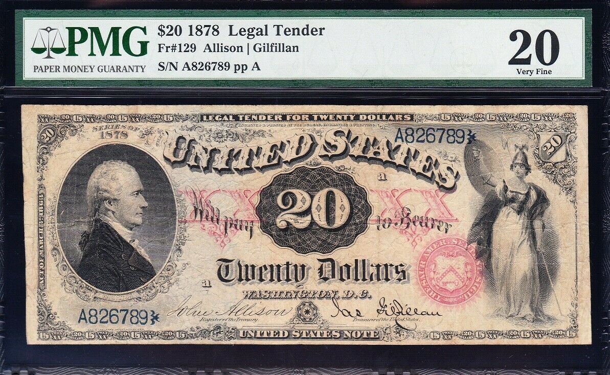 One 1878 $20 Pink Overprint Legal Tender PMG 20.