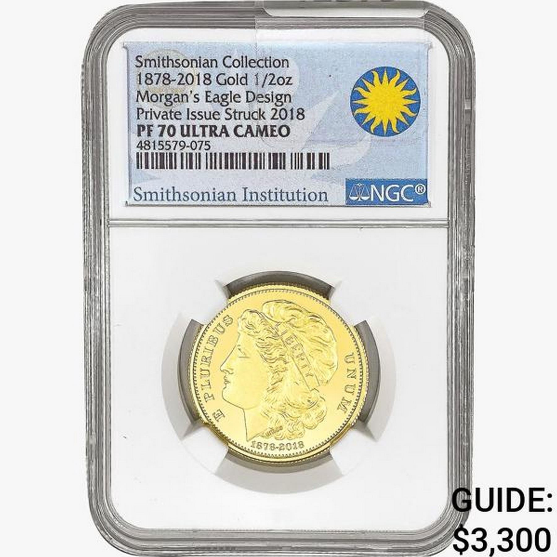 1878-2018 1/2oz. Gold Eagle NGC PF70 UC PI Smith.