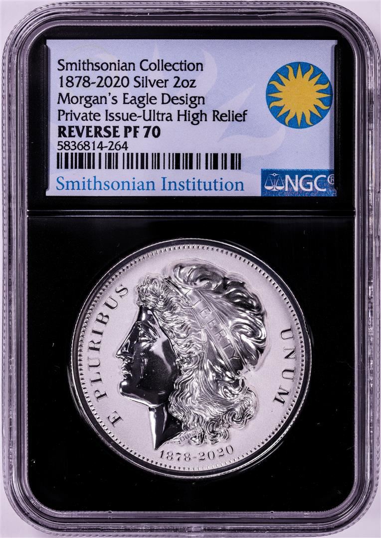 One 1878-2020 Private Issue High Relief Morgan's Eagle Design 2oz Silver NGC Reverse PF70. NGC Certified.