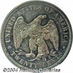 <table><tr><td><table><tr><td>1878 20C PR64 PCGS. Official mintage figures state 790 specimens were produced in this final year, yet Walter Breen estimates not many more than 500 pieces were actually issued. This specimen's reflective fields are blanketed in dark shades of bluish-gray and red, and are contrasted by lightly frosted devices. <BR><BR><B>Important notice:</B> Heritage usually auctions material at the rate of 200-250 lots per hour. On some occasions eBay Live bid software or the Internet may not be able to keep up with the pace of the auction. We recommend placing a realistic absentee bid now as insurance to avoid disappointment. Occasionally the auctioneer may eliminate or reject an eBay Live bid, and the auctioneer may also reopen a lot after the close of the eBay live bidding (usually because we missed an audience bid), and may reject your bid even if it shows you as the winning bidder. By bidding via eBay Live, you agree that Heritage may award the lot to another bidder at its sole discretion under the circumstances described above or any other reasonable circumstances. Since eBay bids are not shown to us until we open the lot on the floor, we treat those bids just like floor bids. In most cases the floor responds before the eBay bid is presented to us, due to Internet lag time, so for consistency we have made it a policy that floor bids are always considered first over tie eBay live bids. Also please note that all Heritage lots purchased through eBay Live carry a 20% Buyer's Premium. Please make sure you read the Terms and Conditions before you bid. <BR><BR><B>IMPORTANT ANNOUNCEMENT ABOUT RESERVES:</B> Heritage now divulges all reserves on its web site 7 days before every auction. If you want to know whether the reserve on this lot has been met, and if not, what the reserve amount is, please visit this lot page on the HeritageCoin.com web site, or email: bid@HeritageGalleries.com </span></font></td></tr></table></td></tr></table>