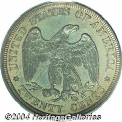 <table><tr><td><TABLE cellSpacing=0 cellPadding=0 width="100%" bgColor=#000000 border=0><TBODY> <TR><TD width="100%"><TABLE cellSpacing=1 cellPadding=3 width="100%" border=0><TBODY><TR><TD width="100%" bgColor=#79735c><FONT face=arial color=#ffffff size=3><B>Description</B> </FONT></TD></TR><TR><TD width="100%" bgColor=#ffffff><FONT face=arial size=2><B>1878 20C PR64 PCGS.</B></I> While the 1878 is well known as a very scarce issue in the absolute sense because of its low mintage, it is also a condition rarity. We are fortunate to have two high grade examples of this rarity from the short-lived twenty cent piece series. This coin has bright, deeply mirrored fields and each side is covered with sea-green toning that turns to pale rose around the margins. </FONT></TD></TR></TBODY></TABLE></TD></TR></TBODY></TABLE><BR><A name=PricesRealized></A><TABLE cellSpacing=0 cellPadding=0 width="100%" bgColor=#000000 border=0><TBODY><TR><TD width="100%"><TABLE cellSpacing=1 cellPadding=3 width="100%" border=0><TBODY><TR><TD width="100%" bgColor=#79735c><A name=PR><FONT face=arial color=#ffffff size=3><B>Previous Prices from Heritage Auctions</B> </FONT></A></TD></TR><TR><TD bgColor=#f6f6ed><TABLE cellSpacing=0 cellPadding=0 width="100%" border=1><TBODY><TR><TD align=middle width="33%"><B>Date</B></TD><TD align=middle width="33%"><B>Service</B></TD><TD align=middle width="33%"><B>Price</B></TD></TR><TR bgColor=whitesmoke><TD width="33%"><B>01/07/2004</B></TD><TD width="33%">PCGS</TD><TD width="33%">$3,795.00</TD></TR><TR bgColor=whitesmoke><TD width="33%"><B>02/24/2001</B></TD><TD width="33%">PCGS</TD><TD width="33%">$3,335.00</TD></TR><TR bgColor=whitesmoke><TD width="33%"><B>08/02/1997</B></TD><TD width="33%">NGC</TD><TD width="33%">$2,185.00</TD></TR><TR bgColor=whitesmoke><TD width="33%"><B>06/04/1995</B></TD><TD width="33%">PCGS</TD><TD width="33%">$2,200.00</TD></TR><TR bgColor=whitesmoke><TD width="33%"><B>02/03/1995</B></TD><TD width="33%">PCGS</TD><TD width="33%">$2,310.00</TD></TR><TR bgColor=whitesmoke><TD width="33%"><B>02/05/1994</B></TD><TD width="33%">NGC</TD><TD width="33%">$2,310.00</TD></TR><TR bgColor=whitesmoke><TD width="33%"><B>01/01/2001</B></TD><TD width="33%">NGC</TD><TD width="33%">$3,565.00</TD></TR><TR bgColor=whitesmoke><TD width="33%"><B>05/01/2001</B></TD><TD width="33%">NGC</TD><TD width="33%">$4,370.00</TD></TR><TR bgColor=whitesmoke><TD width="33%"><B>01/01/1997</B></TD><TD width="33%">NGC</TD><TD width="33%">$2,640.00</TD></TR><TR bgColor=whitesmoke><TD width="33%"><B>05/01/1997</B></TD><TD width="33%">PCGS</TD><TD width="33%">$2,970.00</TD></TR><TR bgColor=whitesmoke><TD width="33%"><B>01/01/1999</B></TD><TD width="33%">PCGS</TD><TD width="33%">$5,750.00</TD></TR></TBODY></TABLE></TD></TR><TR><TD bgColor=#ffffff><FONT face=arial size=1 ?>PLEASE NOTE: All prices realized reflect the final hammer price PLUS the buyer's premium in auctions that charge a buyer's premium. Each item has a notation at the top of the listing indicating whether that lot included a buyer's premium. Example: A item that sells with a final hammer price of $100 and a 20% buyer's premium will display with a price realized of $120. All information listed is intended to be as accurate as possible, but errors are possible. Please use this guide carefully and inform us of any inaccuracies. </FONT></TD></TR></TBODY></TABLE></TD></TR></TBODY></TABLE><BR><TABLE cellSpacing=0 cellPadding=0 width="100%" bgColor=#000000 border=0><TBODY><TR><TD width="100%"><TABLE cellSpacing=1 cellPadding=3 width="100%" border=0><TBODY><TR><TD width="100%" bgColor=#79735c colSpan=6><FONT face=arial color=#ffffff size=3><B>Price Guide*</B> </FONT></TD></TR><TR bgColor=#f6f6ed><TD align=middle><B>Grade</B> </TD><TD align=middle><B>Coin World<BR>(Trends)</B> </TD><TD align=middle><B>Numismedia<BR>Retail</B> </TD><TD align=middle><B>Numismedia<BR>Wholesale</B> </TD><TD align=middle><B>Coin<BR>Universe</B> </TD><TD align=middle><B>Heritage<BR>Value Index</B> </TD></TR><TR bgColor=#ffffff><TD align=middle>63</TD><TD align=right>$4,000.00</TD><TD align=right>---</TD><TD align=right>$2,225.00</TD><TD align=right>$2,225.00</TD><TD align=right>$2,119.17</TD></TR><TR style="FONT-WEIGHT: bold" bgColor=#cccfdd><TD align=middle>64</TD><TD align=right>$5,500.00</TD><TD align=right>---</TD><TD align=right>$3,520.00</TD><TD align=right>$4,650.00</TD><TD align=right>$3,633.33</TD></TR><TR bgColor=#ffffff><TD align=middle>65</TD><TD align=right>$11,500.00</TD><TD align=right>---</TD><TD align=right>$7,650.00</TD><TD align=right>$11,500.00</TD><TD align=right>$7,666.67</TD></TR><TR bgColor=#ffffff><TD colSpan=6><FONT size=1>*All information listed is intended to be as accurate as possible, but errors are possible. No item may be returned or refused based on this information which is provided as a service to our customers. You should contact each pricing source directly to determine the accuracy of this information. </FONT></TD></TR></TBODY></TABLE></TD></TR></TBODY></TABLE><BR><TABLE cellSpacing=0 cellPadding=0 width="100%" bgColor=#000000 border=0><TBODY><TR><TD width="100%"><TABLE cellSpacing=1 cellPadding=3 width="100%" border=0><TBODY><TR><TD width="100%" bgColor=#79735c><FONT face=arial color=#ffffff size=3><B>Population Guide</B> </FONT></TD></TR><TR bgColor=#ffffff><TD align=middle><!-- Begin Output of Population Grid--><TABLE cellSpacing=0 cellPadding=0 width="100%" border=0><TBODY><TR><TD vAlign=center><TABLE cellSpacing=0 width="100%" border=1 cellsadding="3"><TBODY><TR><TD vAlign=center><TABLE cellSpacing=0 cellPadding=3 width="100%" border=1><TBODY><TR><TD vAlign=center align=middle bgColor=#f0f1e8 colSpan=2 <CENTER><FONT face=Arial size=2><B>PCGS Pop </B></FONT><CENTER></CENTER></TD><TD vAlign=center align=middle bgColor=#f0f1e8 colSpan=2><CENTER><FONT face=Arial size=2><B>NGC Pop</B></CENTER></FONT></TD></TR><TR><TD vAlign=center><FONT face=Arial size=2>(64)</FONT> </TD><TD vAlign=center align=right><FONT face=Arial size=2>92</F