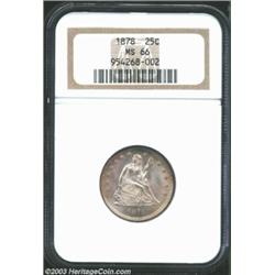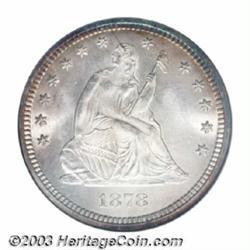 <TABLE cellSpacing=0 cellPadding=0 width="100%" bgColor=#000000 border=0><TBODY><TR><TD width="100%"><TABLE cellSpacing=1 cellPadding=3 width="100%" border=0><TBODY><TR><TD width="100%" bgColor=#79735c><FONT face=arial color=#ffffff size=3><B>Description</B> </FONT></TD></TR><TR><TD width="100%" bgColor=#ffffff><FONT face=arial size=2><B>1878 25C MS66 NGC.</B></I> Dazzling cartwheel luster and carefully preserved surfaces make this splendid type coin stand out from its peers. The borders possess rich apricot and powder-blue colors, while the centers are untoned. The highpoints of the Seated Liberty are not fully struck, but the eagle is bold and the borders are crisp. Neither major service has encapsulated a finer example. Population: 4 in 66, 0 finer (7/03). </FONT></TD></TR></TBODY></TABLE></TD></TR></TBODY></TABLE><BR><A name=PricesRealized></A><TABLE cellSpacing=0 cellPadding=0 width="100%" bgColor=#000000 border=0><TBODY><TR><TD width="100%"><TABLE cellSpacing=1 cellPadding=3 width="100%" border=0><TBODY><TR><TD width="100%" bgColor=#79735c><A name=PR><FONT face=arial color=#ffffff size=3><B>Previous Prices from Heritage Auctions</B> </FONT></A></TD></TR><TR><TD bgColor=#f6f6ed><TABLE cellSpacing=0 cellPadding=0 width="100%" border=1><TBODY><TR><TD align=middle width="33%"><B>Date</B></TD><TD align=middle width="33%"><B>Service</B></TD><TD align=middle width="33%"><B>Price</B></TD></TR><TR bgColor=whitesmoke><TD width="33%"><B>05/01/1997</B></TD><TD width="33%">NGC</TD><TD width="33%">$2,860.00</TD></TR></TBODY></TABLE></TD></TR><TR><TD bgColor=#ffffff><FONT face=arial size=1 ?>PLEASE NOTE: All prices realized reflect the final hammer price PLUS the buyer's premium in auctions that charge a buyer's premium. Each item has a notation at the top of the listing indicating whether that lot included a buyer's premium. Example: A item that sells with a final hammer price of $100 and a 20% buyer's premium will display with a price realized of $120. All information listed is intended to be as accurate as possible, but errors are possible. Please use this guide carefully and inform us of any inaccuracies. </FONT></TD></TR></TBODY></TABLE></TD></TR></TBODY></TABLE><BR><TABLE cellSpacing=0 cellPadding=0 width="100%" bgColor=#000000 border=0><TBODY><TR><TD width="100%"><TABLE cellSpacing=1 cellPadding=3 width="100%" border=0><TBODY><TR><TD width="100%" bgColor=#79735c colSpan=6><FONT face=arial color=#ffffff size=3><B>Price Guide*</B> </FONT></TD></TR><TR bgColor=#f6f6ed><TD align=middle><B>Grade</B> </TD><TD align=middle><B>Coin World<BR>(Trends)</B> </TD><TD align=middle><B>Numismedia<BR>Retail</B> </TD><TD align=middle><B>Numismedia<BR>Wholesale</B> </TD><TD align=middle><B>Coin<BR>Universe</B> </TD><TD align=middle><B>Heritage<BR>Value Index</B> </TD></TR><TR bgColor=#ffffff><TD align=middle>65</TD><TD align=right>---</TD><TD align=right>---</TD><TD align=right>$1,150.00</TD><TD align=right>$3,800.00</TD><TD align=right>$2,053.33</TD></TR><TR style="FONT-WEIGHT: bold" bgColor=#cccfdd><TD align=middle>66</TD><TD align=right>---</TD><TD align=right>---</TD><TD align=right>$3,325.00</TD><TD align=right>---</TD><TD align=right>---</TD></TR><TR bgColor=#ffffff><TD align=middle>67</TD><TD align=right>---</TD><TD align=right>---</TD><TD align=right>---</TD><TD align=right>---</TD><TD align=right>---</TD></TR><TR bgColor=#ffffff><TD colSpan=6><FONT size=1>*All information listed is intended to be as accurate as possible, but errors are possible. No item may be returned or refused based on this information which is provided as a service to our customers. You should contact each pricing source directly to determine the accuracy of this information. </FONT></TD></TR></TBODY></TABLE></TD></TR></TBODY></TABLE><BR><TABLE cellSpacing=0 cellPadding=0 width="100%" bgColor=#000000 border=0><TBODY><TR><TD width="100%"><TABLE cellSpacing=1 cellPadding=3 width="100%" border=0><TBODY><TR><TD width="100%" bgColor=#79735c><FONT face=arial color=#ffffff size=3><B>Population Guide</B> </FONT></TD></TR><TR bgColor=#ffffff><TD align=middle><!-- Begin Output of Population Grid--><TABLE cellSpacing=0 cellPadding=0 width="100%" border=0><TBODY><TR><TD vAlign=center><TABLE cellSpacing=0 width="100%" border=1 cellsadding="3"><TBODY><TR><TD vAlign=center><TABLE cellSpacing=0 cellPadding=3 width="100%" border=1><TBODY><TR><TD vAlign=center align=middle bgColor=#f0f1e8 colSpan=2 <CENTER><FONT face=Arial size=2><B>PCGS Pop </B></FONT><CENTER></CENTER></TD><TD vAlign=center align=middle bgColor=#f0f1e8 colSpan=2><CENTER><FONT face=Arial size=2><B>NGC Pop</B></CENTER></FONT></TD></TR><TR><TD vAlign=center><FONT face=Arial size=2>(66)</FONT> </TD><TD vAlign=center align=right><FONT face=Arial size=2>4</FONT> </TD><TD vAlign=center><FONT face=Arial size=2>(66)</FONT> </TD><TD vAlign=center align=right><FONT face=Arial size=2>4</FONT> </TD></TR><TR><TD vAlign=center><FONT face=Arial size=2>(>66)</FONT> </TD><TD vAlign=center align=right><FONT face=Arial size=2>0</FONT> </TD><TD vAlign=center><FONT face=Arial size=2>(>66)</FONT> </TD><TD vAlign=center align=right><FONT face=Arial size=2>0</FONT> </TD></TR></TBODY></TABLE></TD></TR></TBODY></TABLE></TD></TR></TBODY></TABLE><!-- End Output of Population Grid--> Important notice: Heritage usually auctions material at the rate of 200-250 lots per hour. On some occasions eBay Live bid software or the Internet may not be able to keep up with the pace of the auction. We recommend placing a realistic absentee bid now as insurance to avoid disappointment. Occasionally the auctioneer may eliminate or reject an eBay Live bid, and the auctioneer may also reopen a lot after the close of the eBay live bidding (usually because we missed an audience bid), and may reject your bid even if it shows you as the winning bidder. By bidding via eBay Live, you agree that Heritage may award the lot to another bidder at its sole discretion under the circumstances described above or any other reasonable circums