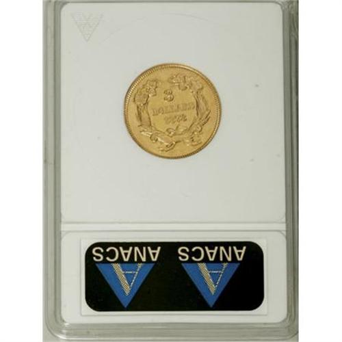 <B>1878 $3 --Cleaned--ANACS. AU53 Details.</B></I> NGC Census: (81/4100). PCGS Population (131/4093). Mintage: 82,324. Numismedia Wsl. Price for NGC/PCGS coin in AU53: $1,340. (#8000)<BR><BR><B>Coin Engraver:</B> James B. Longacre<BR><BR><b>Shipping:</b> Coins & Currency (<a target="_blank" href="http://www.heritageauctions.com/common/shipping.php">view shipping information</a>\)