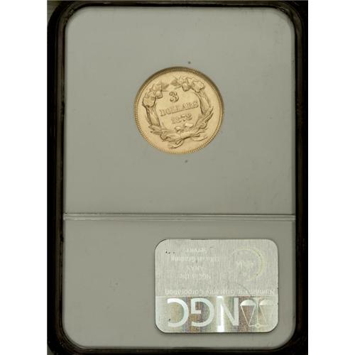 <B>1878 $3 AU58 NGC.</B></I> Boldly struck with a bright sheen, appealing pink and green-gold in the fields, and a few wispy marks in the fields. Minor friction affects Liberty's honey-gold hair.<BR><BR><b>Shipping:</b> Coin/Currency (<a target="_blank" href="http://www.heritageauctions.com/common/shipping.php">view shipping information</a>)