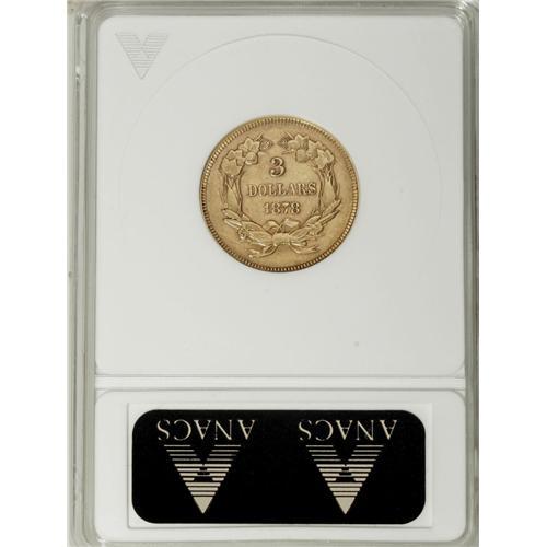 1878 $3 --Cleaned--ANACS. AU53 Details. A patch of hair
