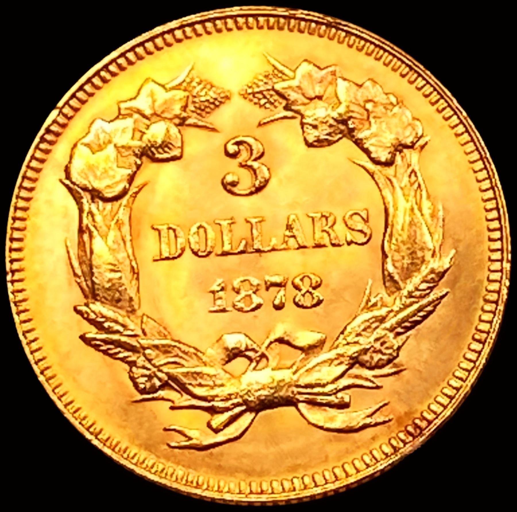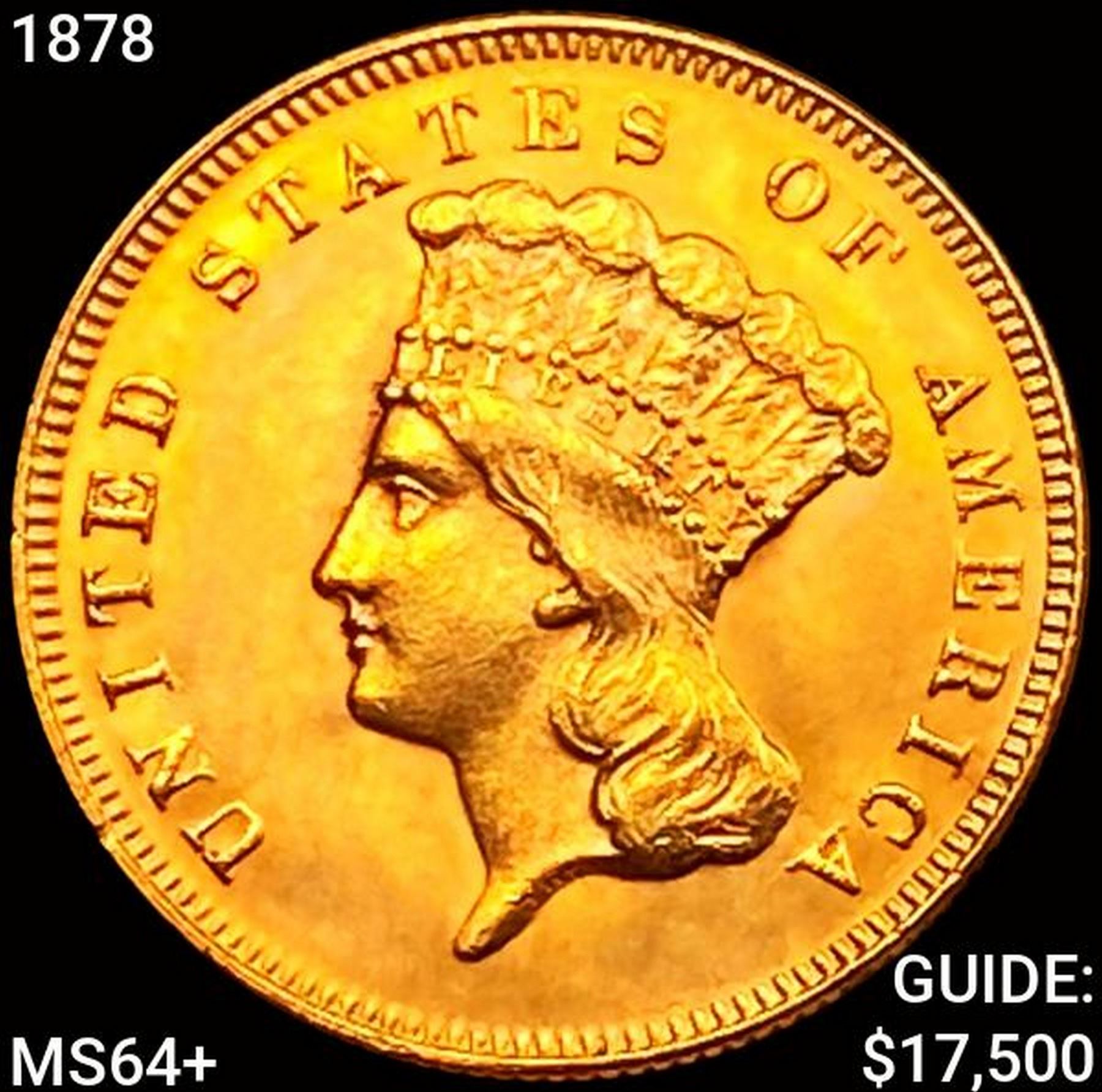 1878 $3 Gold Piece CHOICE BU+