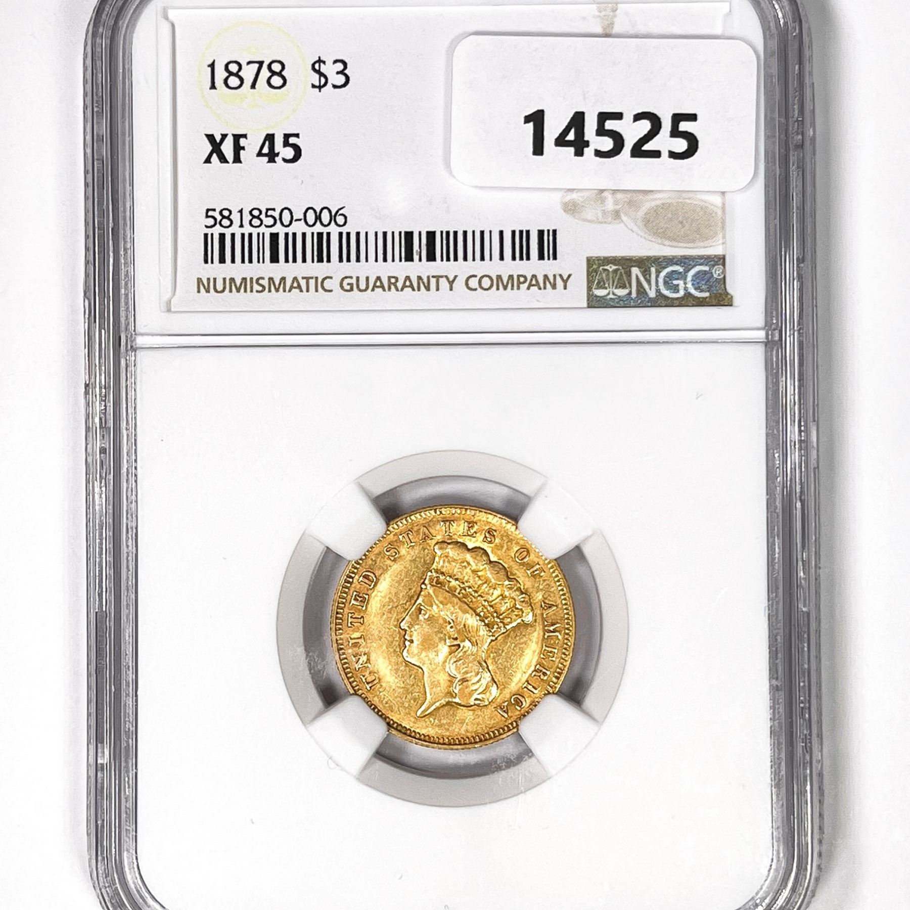 1878 $3 Gold Piece NGC-XF45