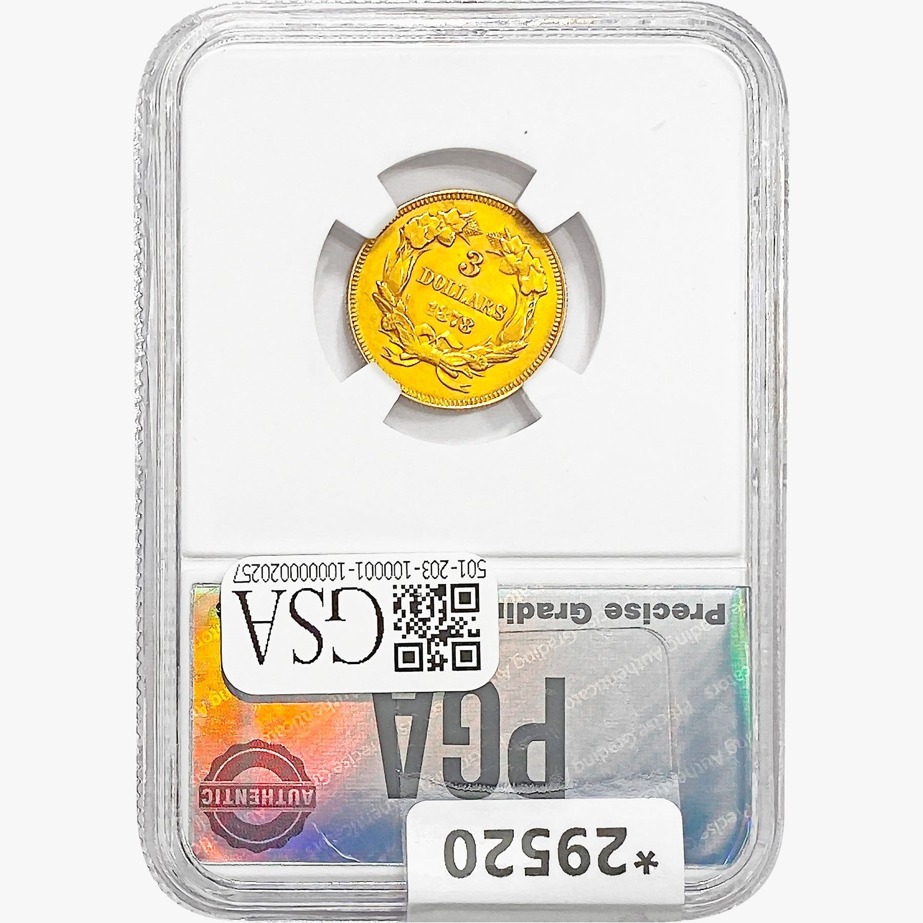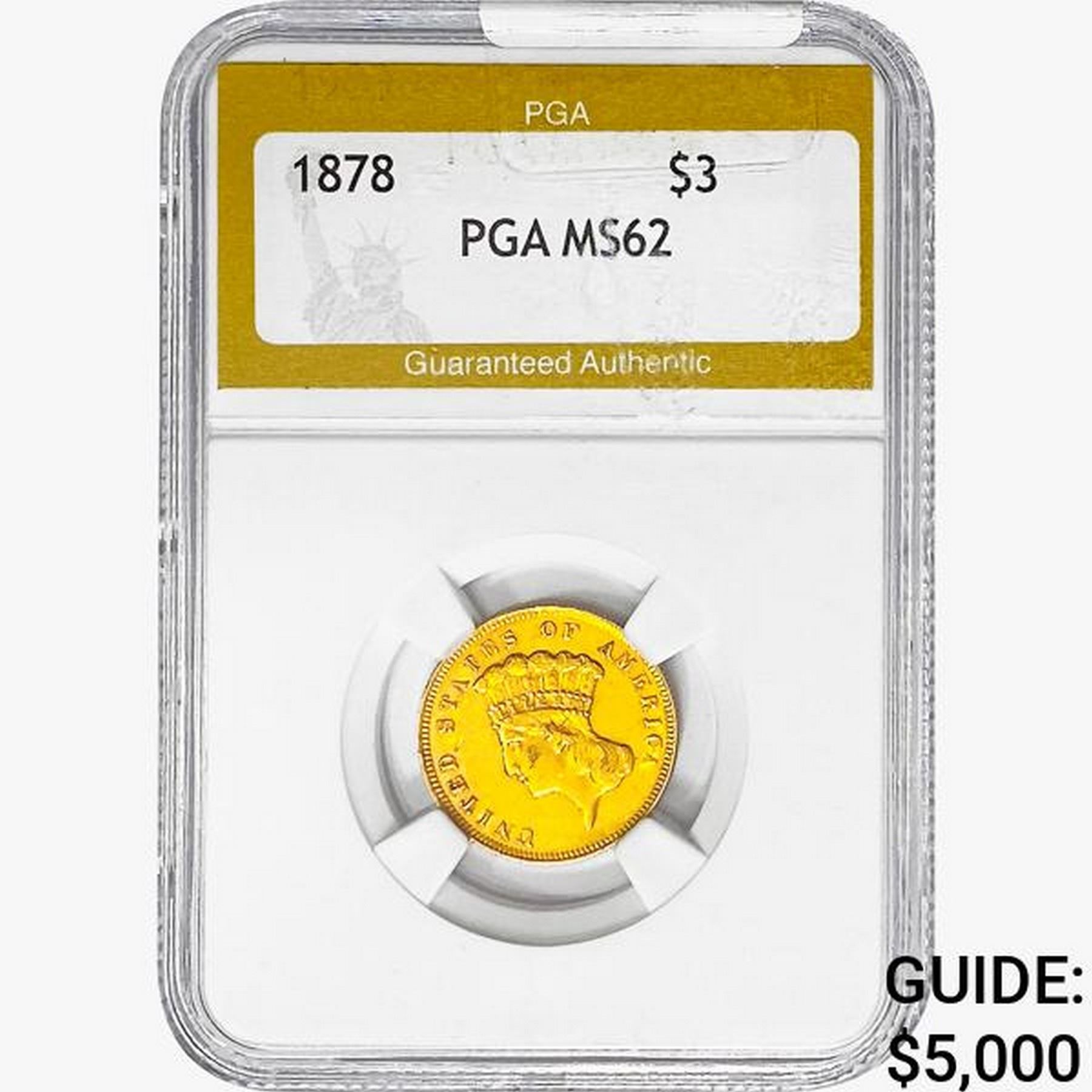 1878 $3 Gold Piece PGA MS62