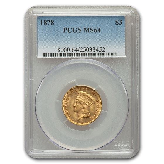 One piece 1878 $3 Gold Princess MS-64 PCGS