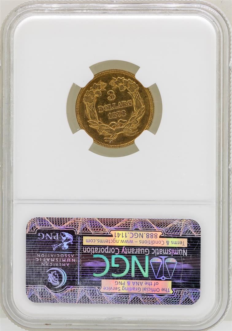 One 1878 $3 Indian Princess Head Gold Coin NGC XF45. NGC Certified.