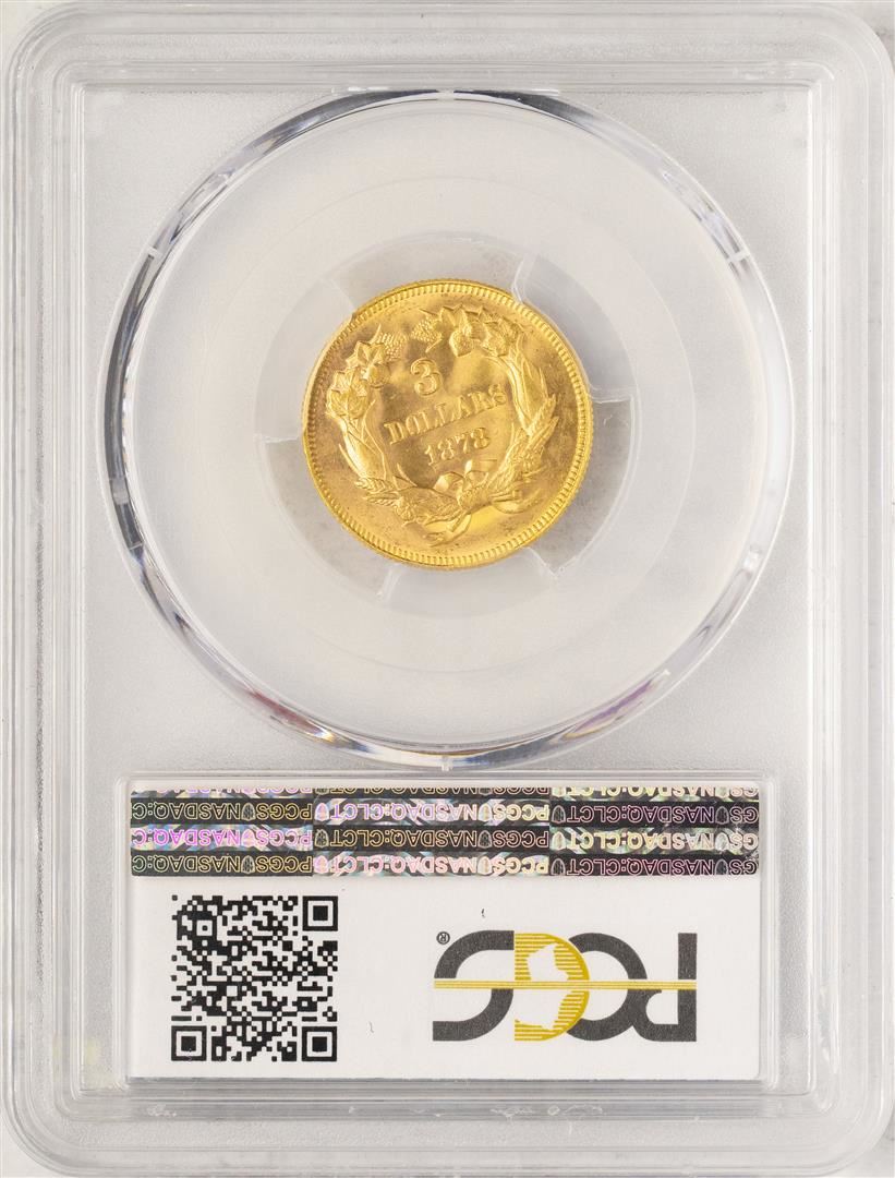 One 1878 $3 Indian Princess Head Gold Coin PCGS MS64+. PCGS Graded.