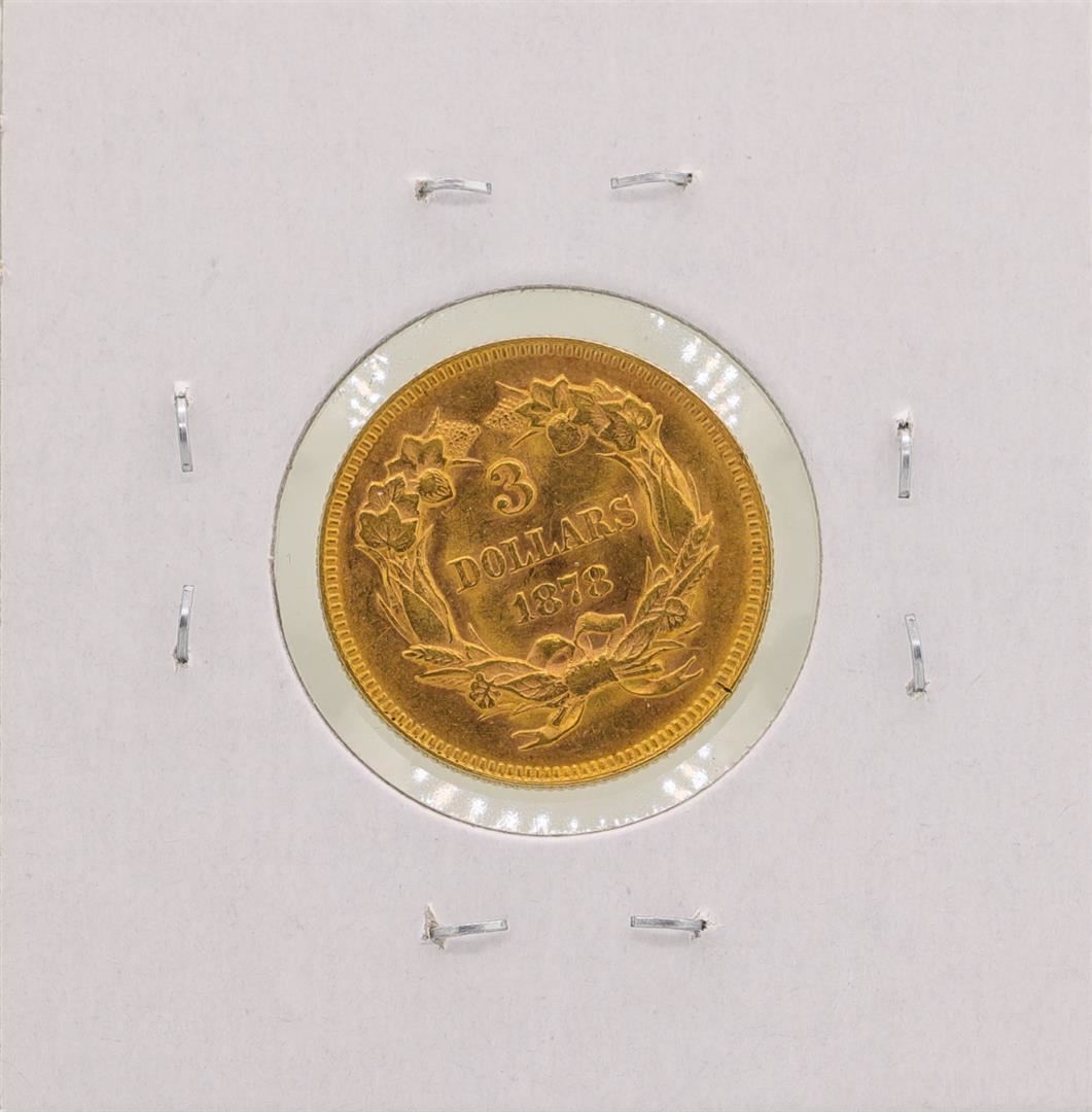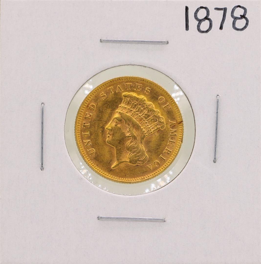 One 1878 $3 Indian Princess Head Gold Coin.