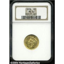 <table><tbody><tr><td><table> <TR><TD width="100%"><TABLE cellSpacing=1 cellPadding=3 width="100%" border=0><TBODY><TR><TD width="100%" bgColor=#79735c><FONT face=arial color=#ffffff size=3><B>Description</B> </FONT></TD></TR><TR><TD width="100%" bgColor=#ffffff><FONT face=arial size=2><B>1878 $3 MS62 NGC.</B></I> A highly lustrous example of this three dollar type coin. The striking details are a bit soft, as usual, and there are a few abrasions scattered about, the most obvious being a shallow scrape in the right obverse field. </FONT></TD></TR></TBODY></TABLE></TD></TR></TBODY></TABLE><BR><A name=PricesRealized></A><TABLE cellSpacing=0 cellPadding=0 width="100%" bgColor=#000000 border=0><TBODY><TR><TD width="100%"><TABLE cellSpacing=1 cellPadding=3 width="100%" border=0><TBODY><TR><TD width="100%" bgColor=#79735c><A name=PR><FONT face=arial color=#ffffff size=3><B>Previous Prices from Heritage Auctions</B> </FONT></A></TD></TR><TR><TD bgColor=#f6f6ed><TABLE cellSpacing=0 cellPadding=0 width="100%" border=1><TBODY><TR><TD align=middle width="33%"><B>Date</B></TD><TD align=middle width="33%"><B>Service</B></TD><TD align=middle width="33%"><B>Price</B></TD></TR><TR bgColor=whitesmoke><TD width="33%"><B>04/29/2003</B></TD><TD width="33%">NGC</TD><TD width="33%">$2,090.70</TD></TR><TR bgColor=whitesmoke><TD width="33%"><B>10/22/2002</B></TD><TD width="33%">NGC</TD><TD width="33%">$2,070.00</TD></TR><TR bgColor=whitesmoke><TD width="33%"><B>01/07/2004</B></TD><TD width="33%">NGC</TD><TD width="33%">$2,645.00</TD></TR><TR bgColor=whitesmoke><TD width="33%"><B>01/07/2004</B></TD><TD width="33%">PCGS</TD><TD width="33%">$2,875.00</TD></TR><TR bgColor=whitesmoke><TD width="33%"><B>11/07/2003</B></TD><TD width="33%">PCGS</TD><TD width="33%">$2,472.50</TD></TR><TR bgColor=whitesmoke><TD width="33%"><B>09/20/2003</B></TD><TD width="33%">PCGS</TD><TD width="33%">$2,530.00</TD></TR><TR bgColor=whitesmoke><TD width="33%"><B>09/20/2003</B></TD><TD width="33%">NGC</TD><TD width="33%">$2,760.00</TD></TR><TR bgColor=whitesmoke><TD width="33%"><B>03/01/2003</B></TD><TD width="33%">PCGS</TD><TD width="33%">$2,415.00</TD></TR><TR bgColor=whitesmoke><TD width="33%"><B>01/11/2003</B></TD><TD width="33%">NGC</TD><TD width="33%">$2,875.00</TD></TR><TR bgColor=whitesmoke><TD width="33%"><B>01/11/2003</B></TD><TD width="33%">PCGS</TD><TD width="33%">$2,645.00</TD></TR><TR bgColor=whitesmoke><TD width="33%"><B>11/23/2002</B></TD><TD width="33%">PCGS</TD><TD width="33%">$3,047.50</TD></TR><TR bgColor=whitesmoke><TD width="33%"><B>06/08/2002</B></TD><TD width="33%">ANACS</TD><TD width="33%">$3,910.00</TD></TR><TR bgColor=whitesmoke><TD width="33%"><B>06/08/2002</B></TD><TD width="33%">PCGS</TD><TD width="33%">$2,415.00</TD></TR><TR bgColor=whitesmoke><TD width="33%"><B>04/27/2002</B></TD><TD width="33%">PCGS</TD><TD width="33%">$2,127.50</TD></TR><TR bgColor=whitesmoke><TD width="33%"><B>08/08/2001</B></TD><TD width="33%">PCGS</TD><TD width="33%">$1,840.00</TD></TR><TR bgColor=whitesmoke><TD width="33%"><B>08/08/2001</B></TD><TD width="33%">NGC</TD><TD width="33%">$1,782.50</TD></TR><TR bgColor=whitesmoke><TD width="33%"><B>05/31/2001</B></TD><TD width="33%">PCGS</TD><TD width="33%">$2,357.50</TD></TR><TR bgColor=whitesmoke><TD width="33%"><B>05/31/2001</B></TD><TD width="33%">NGC</TD><TD width="33%">$1,840.00</TD></TR><TR bgColor=whitesmoke><TD width="33%"><B>11/17/2000</B></TD><TD width="33%">NGC</TD><TD width="33%">$1,610.00</TD></TR><TR bgColor=whitesmoke><TD width="33%"><B>05/06/2000</B></TD><TD width="33%">NGC</TD><TD width="33%">$1,955.00</TD></TR><TR bgColor=whitesmoke><TD width="33%"><B>03/02/2000</B></TD><TD width="33%">PCGS</TD><TD width="33%">$2,185.00</TD></TR><TR bgColor=whitesmoke><TD width="33%"><B>01/08/2000</B></TD><TD width="33%">PCGS</TD><TD width="33%">$2,185.00</TD></TR><TR bgColor=whitesmoke><TD width="33%"><B>11/18/1999</B></TD><TD width="33%">NGC</TD><TD width="33%">$2,070.00</TD></TR><TR bgColor=whitesmoke><TD width="33%"><B>01/10/1998</B></TD><TD width="33%">NGC</TD><TD width="33%">$2,012.50</TD></TR><TR bgColor=whitesmoke><TD width="33%"><B>01/07/1998</B></TD><TD width="33%">NGC</TD><TD width="33%">$2,200.00</TD></TR><TR bgColor=whitesmoke><TD width="33%"><B>06/07/1997</B></TD><TD width="33%">PCGS</TD><TD width="33%">$2,777.50</TD></TR><TR bgColor=whitesmoke><TD width="33%"><B>08/19/1995</B></TD><TD width="33%">PCGS</TD><TD width="33%">$3,080.00</TD></TR><TR bgColor=whitesmoke><TD width="33%"><B>03/02/1995</B></TD><TD width="33%">PCGS</TD><TD width="33%">$2,200.00</TD></TR><TR bgColor=whitesmoke><TD width="33%"><B>10/22/1993</B></TD><TD width="33%">PCGS</TD><TD width="33%">$2,860.00</TD></TR><TR bgColor=whitesmoke><TD width="33%"><B>10/22/1993</B></TD><TD width="33%">PCGS</TD><TD width="33%">$2,530.00</TD></TR><TR bgColor=whitesmoke><TD width="33%"><B>04/02/1993</B></TD><TD width="33%">PCGS</TD><TD width="33%">$3,080.00</TD></TR><TR bgColor=whitesmoke><TD width="33%"><B>04/28/1999</B></TD><TD width="33%">PCGS</TD><TD width="33%">$2,585.00</TD></TR><TR bgColor=whitesmoke><TD width="33%"><B>02/01/2001</B></TD><TD width="33%">PCGS</TD><TD width="33%">$2,300.00</TD></TR><TR bgColor=whitesmoke><TD width="33%"><B>02/01/2001</B></TD><TD width="33%">NGC</TD><TD width="33%">$2,185.00</TD></TR><TR bgColor=whitesmoke><TD width="33%"><B>05/01/2001</B></TD><TD width="33%">PCGS</TD><TD width="33%">$2,070.00</TD></TR><TR bgColor=whitesmoke><TD width="33%"><B>08/09/2000</B></TD><TD width="33%">NGC</TD><TD width="33%">$1,725.00</TD></TR><TR bgColor=whitesmoke><TD width="33%"><B>08/09/2000</B></TD><TD width="33%">PCGS</TD><TD width="33%">$2,185.00</TD></TR><TR bgColor=whitesmoke><TD width="33%"><B>02/01/1991</B></TD><TD width="33%">PCGS</TD><TD width="33%">$2,530.00</TD></TR><TR bgColor=whitesmoke><TD width="33%"><B>09/01/1998</B></TD><TD width="33%">PCGS</TD><TD width="33%">$2,530.00</TD></TR><TR bgColor=whitesmoke><TD width="33%"><B>01/01/1994</B></TD><TD width="33%">PCGS</TD><TD width="33%">$2,310.00</T
