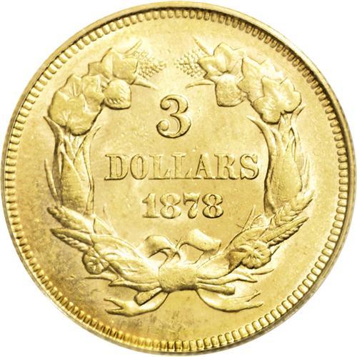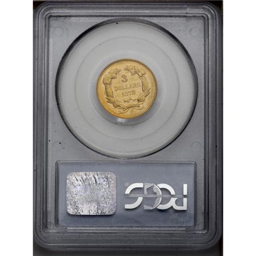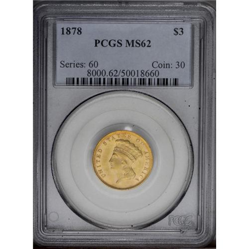 1878 $3 MS62 PCGS. Beautiful copper-gold color, with s