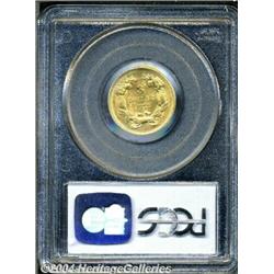 <B>1878<$3> MS62 PCGS.</B></I> A few light, scattered abrasions are evident on either side, but none is out of context with the assigned grade and the overall eye appeal is well above average for the grade. Full, even luster radiates from the well-struck surfaces. An ideal coin for a Mint State gold Type set. <BR><BR><B>Important notice:</B> Heritage usually auctions material at the rate of 200-250 lots per hour. On some occasions eBay Live bid software or the Internet may not be able to keep up with the pace of the auction. We recommend placing a realistic absentee bid now as insurance to avoid disappointment. Occasionally the auctioneer may eliminate or reject an eBay Live bid, and the auctioneer may also reopen a lot after the close of the eBay live bidding (usually because we missed an audience bid), and may reject your bid even if it shows you as the winning bidder. By bidding via eBay Live, you agree that Heritage may award the lot to another bidder at its sole discretion under the circumstances described above or any other reasonable circumstances. Since eBay bids are not shown to us until we open the lot on the floor, we treat those bids just like floor bids. In most cases the floor responds before the eBay bid is presented to us, due to Internet lag time, so for consistency we have made it a policy that floor bids are always considered first over tie eBay live bids. Also please note that all Heritage lots purchased through eBay Live carry a 20% Buyer's Premium. Please make sure you read the Terms and Conditions before you bid.
