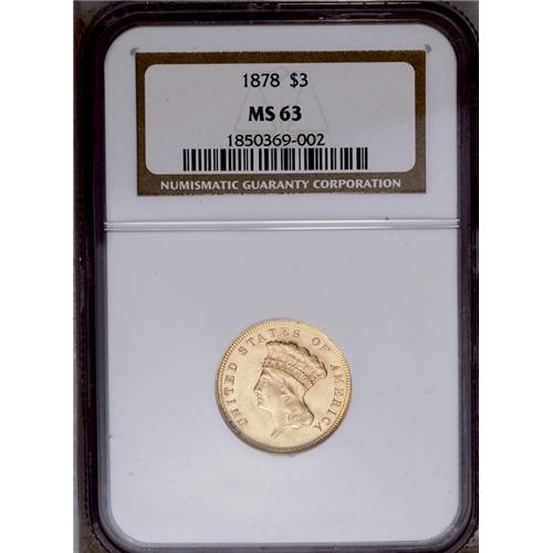 1878 $3 MS63 NGC. During and after the Civil War, the 1878