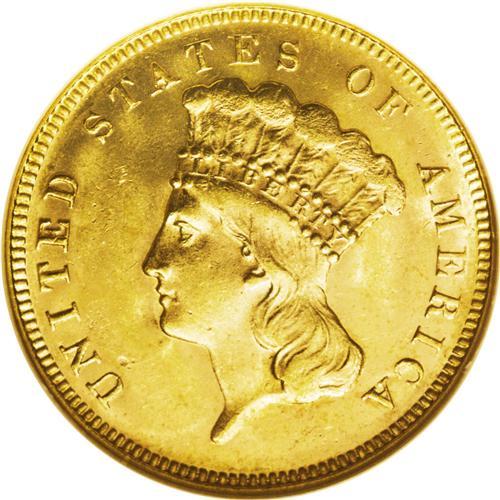 <B>1878 $3 MS63 NGC.</B></I> This date is the popular choice of type collectors who desire a quality example at an affordable price. The only higher mintage issue is the 1854, also considered a common date and also available in attractive Mint State grades, except that date is under additional demand as the first-year of the denomination. For all others, the 1878 is an ideal candidate. This piece has splendid mint frost with brilliant light yellow-gold surfaces. The upper obverse and lower reverse design details are rather weak, and it may be just that reason that this example did not receive a higher grade.<BR><I>From The Park Cities Collection.</B></I><BR><BR><b>Shipping:</b> Coin/Currency (<a target="_blank" href="http://www.heritageauctions.com/common/shipping.php">view shipping information</a>)