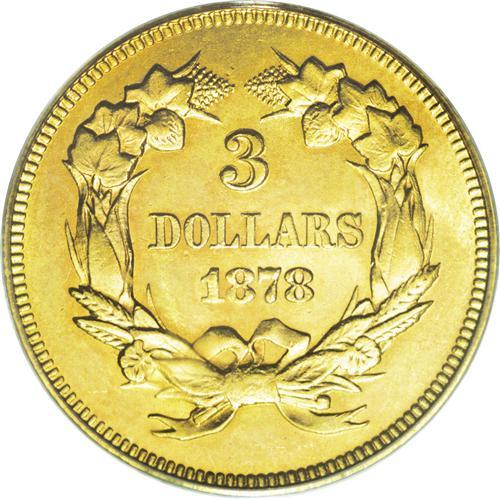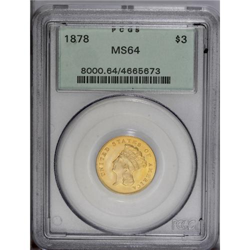 1878 $3 MS64 PCGS. An appealing example of this, the m