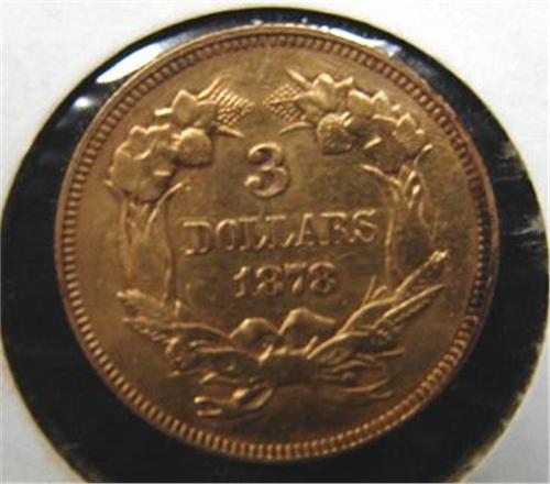 1878 $3 U.S. GOLD COIN. AU.