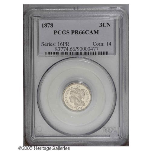 1878 3CN PR66 Cameo PCGS. Speckles of light milky-gray 1878[3CN] PR66 Cameo PCGS.