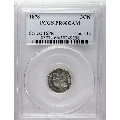 1878 3CN PR66 Cameo PCGS. The second of three proof-on