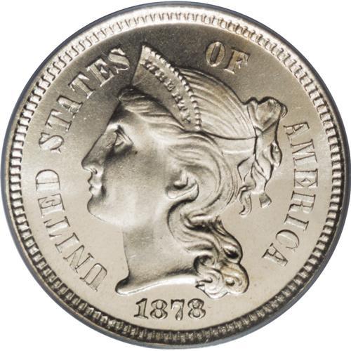 <B>1878 3CN PR67 Cameo PCGS.</B></I> This pleasing Cameo example displays virtually untoned and immaculately preserved surfaces. The strike is decisive, and both sides exhibit delightful frost on the devices. A great example of this proof-only issue, one that amounted to 2,350 pieces, the highest proof mintage for the denomination to that time. Population: 6 in 67 Cameo, 0 finer (4/07).<BR><BR><b>Shipping:</b> Coins & Currency (<a target="_blank" href="http://www.heritageauctions.com/common/shipping.php">view shipping information</a>)