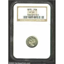<TR><TD width="100%"><TABLE cellSpacing=1 cellPadding=3 width="100%" border=0><TBODY><TR><TD width="100%" bgColor=#79735c><FONT face=arial color=#ffffff size=3><B>Description</B> </FONT></TD></TR><TR><TD width="100%" bgColor=#ffffff><FONT face=arial size=2><B>1878 3CN PR67 NGC.</B></I> A well struck Superb Gem with marvelously undisturbed surfaces and light silver-gray color. The devices have mild cameo contrast with the fields, although this feature is not recorded on the NGC insert. Important as a proof-only issue. Population: 18 in 67, none finer (4/03). </FONT></TD></TR></TBODY></TABLE></TD></TR></TBODY></TABLE><BR><A name=PricesRealized></A><TABLE cellSpacing=0 cellPadding=0 width="100%" bgColor=#000000 border=0><TBODY><TR><TD width="100%"><TABLE cellSpacing=1 cellPadding=3 width="100%" border=0><TBODY><TR><TD width="100%" bgColor=#79735c><A name=PR><FONT face=arial color=#ffffff size=3><B>Previous Prices from Heritage Auctions</B> </FONT></A></TD></TR><TR><TD bgColor=#f6f6ed><TABLE cellSpacing=0 cellPadding=0 width="100%" border=1><TBODY><TR><TD align=middle width="33%"><B>Date</B></TD><TD align=middle width="33%"><B>Service</B></TD><TD align=middle width="33%"><B>Price</B></TD></TR><TR bgColor=whitesmoke><TD width="33%"><B>03/23/2003</B></TD><TD width="33%">PCGS</TD><TD width="33%">$1,610.00</TD></TR><TR bgColor=whitesmoke><TD width="33%"><B>07/30/2002</B></TD><TD width="33%">PCGS</TD><TD width="33%">$3,450.00</TD></TR><TR bgColor=whitesmoke><TD width="33%"><B>08/07/1998</B></TD><TD width="33%">PCGS</TD><TD width="33%">$1,840.00</TD></TR><TR bgColor=whitesmoke><TD width="33%"><B>11/01/1999</B></TD><TD width="33%">PCGS</TD><TD width="33%">$1,725.00</TD></TR><TR bgColor=whitesmoke><TD width="33%"><B>03/23/2003</B></TD><TD width="33%">NGC</TD><TD width="33%">$1,380.00</TD></TR><TR bgColor=whitesmoke><TD width="33%"><B>11/28/2000</B></TD><TD width="33%">NGC</TD><TD width="33%">$1,550.00</TD></TR></TBODY></TABLE></TD></TR><TR><TD bgColor=#ffffff><FONT face=arial size=1 ?>PLEASE NOTE: All prices realized reflect the final hammer price PLUS the buyer's premium in auctions that charge a buyer's premium. Each item has a notation at the top of the listing indicating whether that lot included a buyer's premium. Example: A item that sells with a final hammer price of $100 and a 20% buyer's premium will display with a price realized of $120. All information listed is intended to be as accurate as possible, but errors are possible. Please use this guide carefully and inform us of any inaccuracies. </FONT></TD></TR></TBODY></TABLE></TD></TR></TBODY></TABLE><BR><TABLE cellSpacing=0 cellPadding=0 width="100%" bgColor=#000000 border=0><TBODY><TR><TD width="100%"><TABLE cellSpacing=1 cellPadding=3 width="100%" border=0><TBODY><TR><TD width="100%" bgColor=#79735c colSpan=6><FONT face=arial color=#ffffff size=3><B>Price Guide*</B> </FONT></TD></TR><TR bgColor=#f6f6ed><TD align=middle><B>Grade</B> </TD><TD align=middle><B>Coin World<BR>(Trends)</B> </TD><TD align=middle><B>Numismedia<BR>Retail</B> </TD><TD align=middle><B>Numismedia<BR>Wholesale</B> </TD><TD align=middle><B>Coin<BR>Universe</B> </TD><TD align=middle><B>Heritage<BR>Value Index</B> </TD></TR><TR bgColor=#ffffff><TD align=middle>66</TD><TD align=right>$875.00</TD><TD align=right>---</TD><TD align=right>$825.00</TD><TD align=right>$950.00</TD><TD align=right>$675.83</TD></TR><TR style="FONT-WEIGHT: bold" bgColor=#cccfdd><TD align=middle>67</TD><TD align=right>---</TD><TD align=right>---</TD><TD align=right>$1,775.00</TD><TD align=right>$1,750.00</TD><TD align=right>$1,417.50</TD></TR><TR bgColor=#ffffff><TD align=middle>68</TD><TD align=right>---</TD><TD align=right>---</TD><TD align=right>---</TD><TD align=right>---</TD><TD align=right>---</TD></TR><TR bgColor=#ffffff><TD colSpan=6><FONT size=1>*All information listed is intended to be as accurate as possible, but errors are possible. No item may be returned or refused based on this information which is provided as a service to our customers. You should contact each pricing source directly to determine the accuracy of this information. </FONT></TD></TR></TBODY></TABLE></TD></TR></TBODY></TABLE><BR><TABLE cellSpacing=0 cellPadding=0 width="100%" bgColor=#000000 border=0><TBODY><TR><TD width="100%"><TABLE cellSpacing=1 cellPadding=3 width="100%" border=0><TBODY><TR><TD width="100%" bgColor=#79735c><FONT face=arial color=#ffffff size=3><B>Population Guide</B> </FONT></TD></TR><TR bgColor=#ffffff><TD align=middle><!-- Begin Output of Population Grid--><TABLE cellSpacing=0 cellPadding=0 width="100%" border=0><TBODY><TR><TD vAlign=center><TABLE cellSpacing=0 width="100%" border=1 cellsadding="3"><TBODY><TR><TD vAlign=center><TABLE cellSpacing=0 cellPadding=3 width="100%" border=1><TBODY><TR><TD vAlign=center align=middle bgColor=#f0f1e8 colSpan=2 <CENTER><FONT face=Arial size=2><B>PCGS Pop </B></FONT><CENTER></CENTER></TD><TD vAlign=center align=middle bgColor=#f0f1e8 colSpan=2><CENTER><FONT face=Arial size=2><B>NGC Pop</B></CENTER></FONT></TD></TR><TR><TD vAlign=center><FONT face=Arial size=2>(67)</FONT> </TD><TD vAlign=center align=right><FONT face=Arial size=2>14</FONT> </TD><TD vAlign=center><FONT face=Arial size=2>(67)</FONT> </TD><TD vAlign=center align=right><FONT face=Arial size=2>18</FONT> </TD></TR><TR><TD vAlign=center><FONT face=Arial size=2>(>67)</FONT> </TD><TD vAlign=center align=right><FONT face=Arial size=2>1</FONT> </TD><TD vAlign=center><FONT face=Arial size=2>(>67)</FONT> </TD><TD vAlign=center align=right><FONT face=Arial size=2>0</FONT> </TD></TR></TBODY></TABLE></TD></TR></TBODY></TABLE></TD></TR></TBODY></TABLE><!-- End Output of Population Grid--></TD></TR></TBODY></TABLE></TD></TR></TBODY></TABLE><BR><TABLE cellSpacing=0 cellPadding=0 width="100%" bgColor=#000000 border=0><TBODY><TR> Important notice: We expect to be auctioning lots at the rate of 200-250 per hour. On occasion eBay live bid software cannot keep up with the pace of the auctions where 4-5 lots per minute
