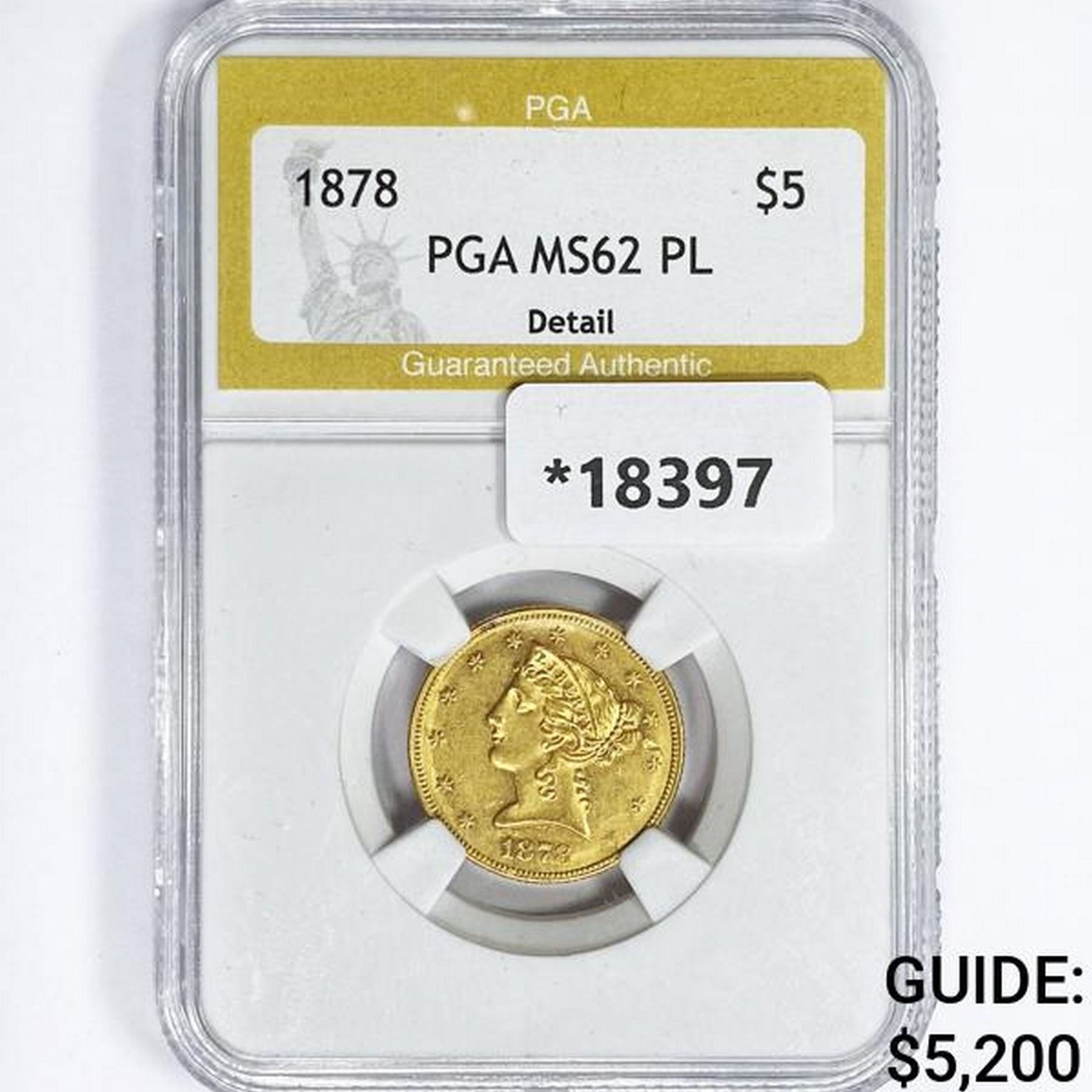 1878 $5 Gold Half Eagle PGA MS62 PL, Detail