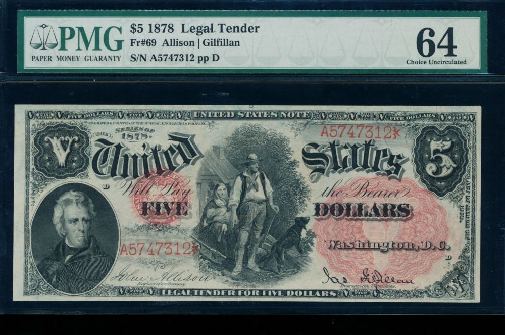 One 1878 $5 Legal Tender Note PMG 64.