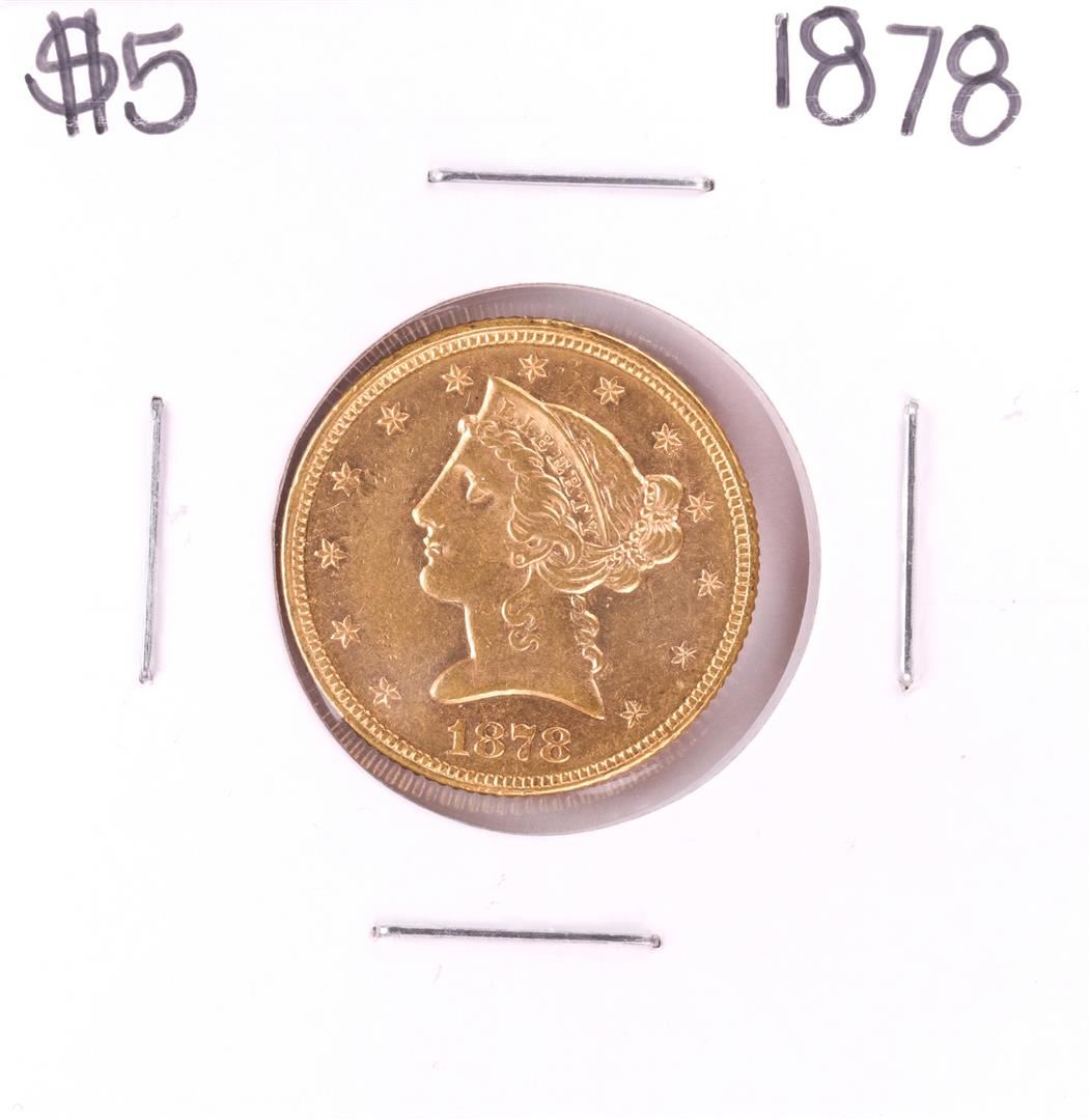 One 1878 $5 Liberty Head Half Eagle Gold Coin.