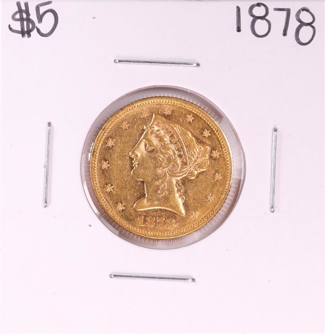 One 1878 $5 Liberty Head Half Eagle Gold Coin.