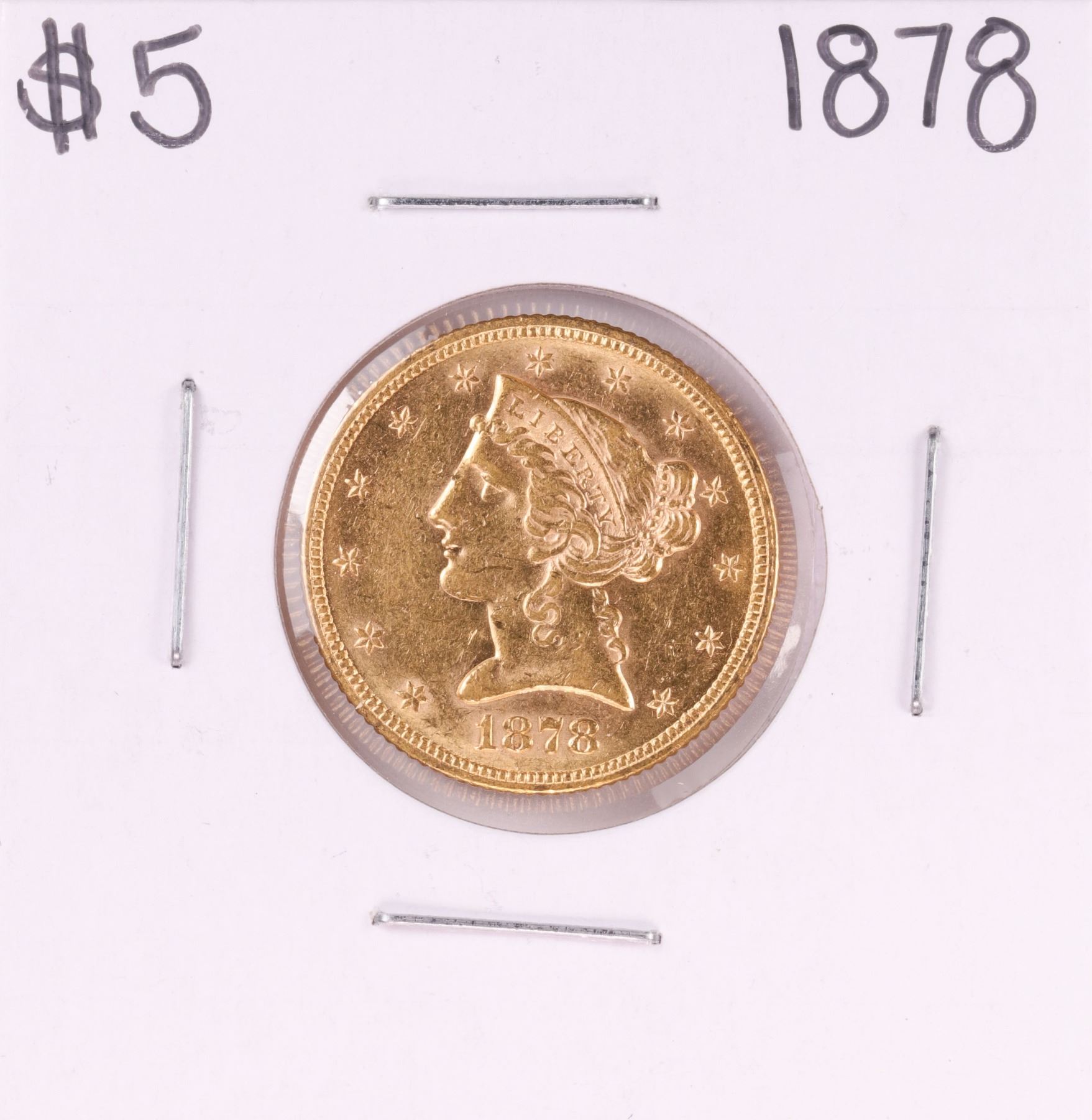 One 1878 $5 Liberty Head Half Eagle Gold Coin.