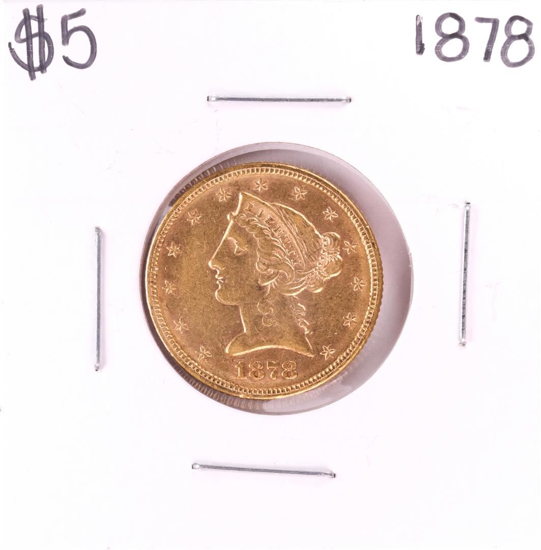 One 1878 $5 Liberty Head Half Eagle Gold Coin.