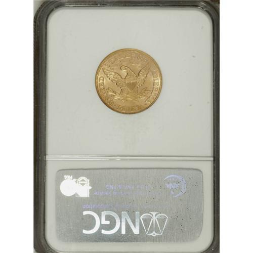 <B>1878 $5 MS62 NGC.</B></I> A well-defined and softly lustrous apricot-gold representative that has a pleasing appearance overall. Light abrasions, including a long, curved mark in the left obverse field, account for the grade. Census: 39 in 62, 28 finer (2/07).<BR><BR><b>Shipping:</b> Coins & Currency (<a target="_blank" href="http://www.heritageauctions.com/common/shipping.php">view shipping information</a>)