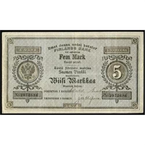 <style type="text/css"> body, td, th { font-family: Arial, Helvetica, sans-serif; font-size: 12px; color: #482424; margin: 0px; padding: 0px; } #header { background-image: url(http://www.bowersandmerena.com/ebay/images/template_v3_01.gif); clear: both; background-color: #590303; border-top-width: 2px; border-top-style: solid; border-top-color: #B38C4F; } #header #header_wrapper { height: 75px; clear: both; width: 800px; margin-right: auto; margin-left: auto; background-image: url(http://www.bowersandmerena.com/ebay/images/template_v3_03.gif); background-repeat: no-repeat; background-position: right; color: #F3EDCC; } #header #header_wrapper #header_logo { float: left; height: 75px; width: 444px; background-image: url(http://www.bowersandmerena.com/ebay/images/template_v3_02.gif); background-repeat: no-repeat; font-size: 10px; text-transform: capitalize; color: #B38C4F; } #header #header_wrapper #header_right { float: left; height: 75px; width: 356px; text-align: right; } #header #header_wrapper #header_right #headerLoginBtn { margin-bottom: 30px; } #header #header_wrapper #header_right input#txtSearch { color: #B49056; border: 1px solid #B49056; width: 175px; padding-top: 3px; padding-right: 3px; padding-bottom: 4px; padding-left: 3px; } #nav { height: 37px; background-image: url(http://www.bowersandmerena.com/ebay/images/template_v3_05.gif); clear: both; } #nav #nav_wrapper { height: 35px; width: 800px; margin-right: auto; margin-left: auto; border-left-width: 1px; border-left-style: solid; border-left-color: #B38C4F; } #nav #nav_wrapper a { padding-right: 15px; padding-left: 15px; border-right-width: 1px; border-right-style: solid; border-right-color: #B38C4F; height: 25px; padding-top: 10px; display: block; float: left; text-decoration: none; font-weight: bold; color: #5D0303; } #nav #nav_wrapper a:hover { color: #B38C4F; } #nav #nav_wrapper #search { float: right; padding-top: 7px; } #nav #nav_wrapper #search #txtSearch { font-family: Arial, Helvetica, sans-serif; font-size: 10px; text-transform: uppercase; color: #D2AE75; border: 1px solid #B38C4F; padding: 3px; } #content_bgd { background-image: url(http://www.bowersandmerena.com/ebay/images/template_v3_09.gif); background-repeat: repeat-y; background-position: center; padding-top: 15px; padding-bottom: 15px; background-color: #FBFBDB; } #content_wrapper { clear: both; height: auto; width: 800px; margin-right: auto; margin-left: auto; } .LotDetailWhite { line-height:normal; font-size:13px; font-family: arial,helvetica,sans-serif; color: White; font-weight: bold; } .LotDetailInformation { line-height:normal; font-size: 13px; font-family: arial,helvetica,sans-serif; } .LotDetailMessage { line-height:normal; font-size: 13px; font-family: arial,helvetica,sans-serif; color: red; } } tr.HeaderAuctionTitle td { color: #000000; font-weight: bold; padding: 2px; background-image: url(http://www.bowersandmerena.com/ebay/images/template_v3_05.gif); background-repeat: repeat-x; border-bottom-width: 1px; border-bottom-style: solid; border-bottom-color: #B38C4F; } table.AuctionSummary a, table.AuctionSummary a:link, table.AuctionSummary a:visited { color: #0000FF; text-decoration: none; } } td.tableHeaderLeft { border-left-width: 1px; border-left-style: solid; border-left-color: #B38C4F; } td.tableHeaderRight { border-right-width: 1px; border-right-style: solid; border-right-color: #B38C4F; } td.tableCellMiddle { border-left-width: 1px; border-left-style: solid; border-left-color: #B38C4F; border-right-width: 1px; border-right-style: solid; border-right-color: #B38C4F; padding: 5px; } tr.footer td { border-top-width: 1px; border-top-style: solid; border-top-color: #B38C4F; } </style> </head> <body> <div id="header"> <div id="header_wrapper"> <div id="header_logo"> </div> <div id="header_right"> </div> </div> </div> <div id="nav"> <div id="nav_wrapper"> <a href="http://www.bowersandmerena.com">Our eBayLive Auctions</a> <a href="#PaymentInfo">Payment Information</a> <a href="#ShippingInfo">Shipping Information</a> <a href="#About">About Bowers and Merena</a> </div> </div> <div id="content_bgd"> <div id="content_wrapper"> <table width="100%" border="0" cellpadding="5" cellspacing="0" class="AuctionSummary"> <tbody> <tr class="HeaderAuctionTitle" style="height: 25px;"> <td align="left" class="tableHeaderLeft" > </td> <td align="center" class="tableHeaderRight"> <span style="font-size: large;">Lot #2861. Various German Territories. 1878 5 Markkaa. Finlands Bank. Very Fine.</span> </td> </tr> <tr> <td colspan="3" class="tableCellMiddle"> P-A43b. Being from a tough country, this early-dated Finnish note will be on many want lists. This item shows the printed signatures and has a lovely blue gray underprint on the face and back. The note has the marking FINKST MYNT below Fem Mark at the top center which is the only distinguishing difference to a similar note. A great example with nice appeal and quality.