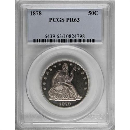<B>1878 50C PR63 PCGS.</B></I> Whispers of gold-tan and olive-green patina make occasional visits to the obverse fields of this Select proof, leaving the remaining surfaces brilliant. The design elements are well impressed, and a few minor handling marks are noted on both sides.<B><BR></B></I><I>From The Beau Clerc Collection.</B></I><BR><BR><B>Coin Engraver:</B> Christian Gobrecht<BR><BR><b>Shipping:</b> Coins & Currency (<a target="_blank" href="http://www.heritageauctions.com/common/shipping.php">view shipping information</a>)