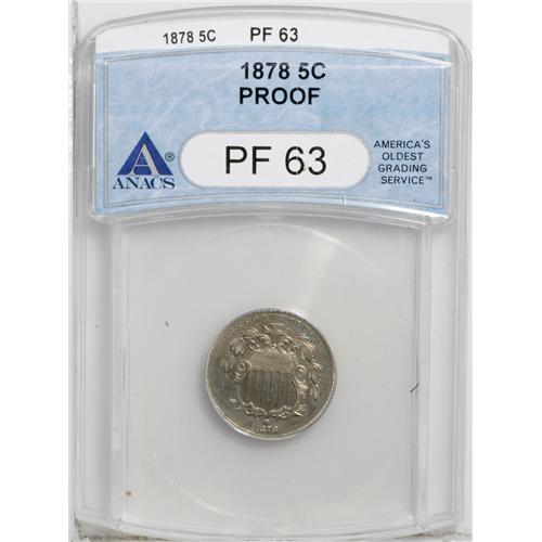 1878 5C PR63 ANACS. Sharply struck and lightly toned,