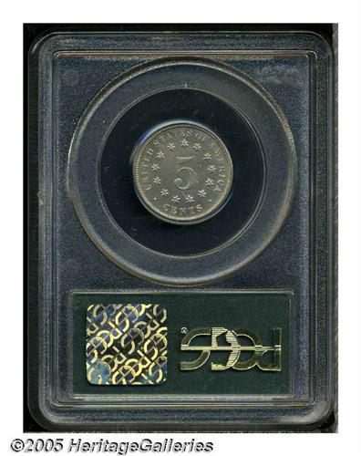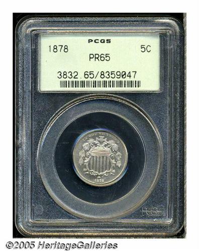 <B>1878<5C> PR65 PCGS.</B></I> A meticulously struck Gem with medium variegated apricot and olive-gray colors. Perfect save for a tiny obverse spot at 8 o'clock. A popular proof-only issue, housed in a green label holder.