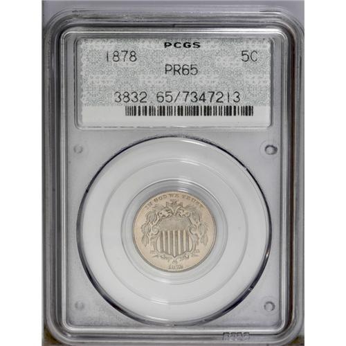 1878 5C PR65 PCGS. Breen-2509, "Rare." The vertical sh