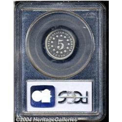 <table><tr><td><table><tr><td>1878 5C PR66 Cameo PCGS. This proof-only issue features a stunning cameo effect, particularly on the obverse. The surfaces are virtually free of contact marks or spotting. This specimen would be a welcome addition to a Shield nickel set. <BR><BR><B>Important notice:</B> Heritage usually auctions material at the rate of 200-250 lots per hour. On some occasions eBay Live bid software or the Internet may not be able to keep up with the pace of the auction. We recommend placing a realistic absentee bid now as insurance to avoid disappointment. Occasionally the auctioneer may eliminate or reject an eBay Live bid, and the auctioneer may also reopen a lot after the close of the eBay live bidding (usually because we missed an audience bid), and may reject your bid even if it shows you as the winning bidder. By bidding via eBay Live, you agree that Heritage may award the lot to another bidder at its sole discretion under the circumstances described above or any other reasonable circumstances. Since eBay bids are not shown to us until we open the lot on the floor, we treat those bids just like floor bids. In most cases the floor responds before the eBay bid is presented to us, due to Internet lag time, so for consistency we have made it a policy that floor bids are always considered first over tie eBay live bids. Also please note that all Heritage lots purchased through eBay Live carry a 20% Buyer's Premium. Please make sure you read the Terms and Conditions before you bid. <BR><BR><B>IMPORTANT ANNOUNCEMENT ABOUT RESERVES:</B> Heritage now divulges all reserves on its web site 7 days before every auction. If you want to know whether the reserve on this lot has been met, and if not, what the reserve amount is, please visit this lot page on the HeritageCoin.com web site, or email: bid@HeritageGalleries.com </span></font></td></tr></table></td></tr></table>