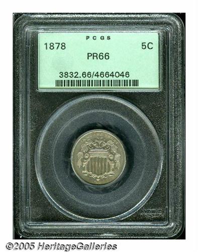 1878 5C PR66 PCGS. Lovely, faintly matte proof ex