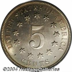 <table><tr><td><TABLE cellSpacing=0 cellPadding=0 width="100%" bgColor=#000000 border=0><TBODY> <TR><TD width="100%"><TABLE cellSpacing=1 cellPadding=3 width="100%" border=0><TBODY><TR><TD width="100%" bgColor=#79735c><FONT face=arial color=#ffffff size=3><B>Description</B> </FONT></TD></TR><TR><TD width="100%" bgColor=#ffffff><FONT face=arial size=2><B>1878 5C PR67 PCGS.</B></I> The second 8 in the date is recut within the lower loop. This satiny and sharply struck Superb Gem is essentially pristine. Beautiful rainbow colors adorn the peripheries, while the centers are a lovely pale-olive hue. As of (02/04), 14 examples have been certified as PR67, by PCGS, with another three pieces as PR67 Cameo, and none finer. </FONT></TD></TR></TBODY></TABLE></TD></TR></TBODY></TABLE><BR><A name=PricesRealized></A><TABLE cellSpacing=0 cellPadding=0 width="100%" bgColor=#000000 border=0><TBODY><TR><TD width="100%"><TABLE cellSpacing=1 cellPadding=3 width="100%" border=0><TBODY><TR><TD width="100%" bgColor=#79735c><A name=PR><FONT face=arial color=#ffffff size=3><B>Previous Prices from Heritage Auctions</B> </FONT></A></TD></TR><TR><TD bgColor=#f6f6ed><TABLE cellSpacing=0 cellPadding=0 width="100%" border=1><TBODY><TR><TD align=middle width="33%"><B>Date</B></TD><TD align=middle width="33%"><B>Service</B></TD><TD align=middle width="33%"><B>Price</B></TD></TR><TR bgColor=whitesmoke><TD width="33%"><B>09/20/2003</B></TD><TD width="33%">PCGS</TD><TD width="33%">$2,300.00</TD></TR><TR bgColor=whitesmoke><TD width="33%"><B>03/01/2003</B></TD><TD width="33%">PCGS</TD><TD width="33%">$3,795.00</TD></TR><TR bgColor=whitesmoke><TD width="33%"><B>01/08/1999</B></TD><TD width="33%">PCGS</TD><TD width="33%">$1,840.00</TD></TR><TR bgColor=whitesmoke><TD width="33%"><B>09/18/1996</B></TD><TD width="33%">NGC</TD><TD width="33%">$1,705.00</TD></TR><TR bgColor=whitesmoke><TD width="33%"><B>08/01/1999</B></TD><TD width="33%">PCGS</TD><TD width="33%">$1,668.00</TD></TR><TR bgColor=whitesmoke><TD width="33%"><B>03/01/1999</B></TD><TD width="33%">PCGS</TD><TD width="33%">$1,668.00</TD></TR></TBODY></TABLE></TD></TR><TR><TD bgColor=#ffffff><FONT face=arial size=1 ?>PLEASE NOTE: All prices realized reflect the final hammer price PLUS the buyer's premium in auctions that charge a buyer's premium. Each item has a notation at the top of the listing indicating whether that lot included a buyer's premium. Example: A item that sells with a final hammer price of $100 and a 20% buyer's premium will display with a price realized of $120. All information listed is intended to be as accurate as possible, but errors are possible. Please use this guide carefully and inform us of any inaccuracies. </FONT></TD></TR></TBODY></TABLE></TD></TR></TBODY></TABLE><BR><TABLE cellSpacing=0 cellPadding=0 width="100%" bgColor=#000000 border=0><TBODY><TR><TD width="100%"><TABLE cellSpacing=1 cellPadding=3 width="100%" border=0><TBODY><TR><TD width="100%" bgColor=#79735c colSpan=6><FONT face=arial color=#ffffff size=3><B>Price Guide*</B> </FONT></TD></TR><TR bgColor=#f6f6ed><TD align=middle><B>Grade</B> </TD><TD align=middle><B>Coin World<BR>(Trends)</B> </TD><TD align=middle><B>Numismedia<BR>Retail</B> </TD><TD align=middle><B>Numismedia<BR>Wholesale</B> </TD><TD align=middle><B>Coin<BR>Universe</B> </TD><TD align=middle><B>Heritage<BR>Value Index</B> </TD></TR><TR bgColor=#ffffff><TD align=middle>66</TD><TD align=right>$2,500.00</TD><TD align=right>---</TD><TD align=right>$885.00</TD><TD align=right>$1,200.00</TD><TD align=right>$1,138.33</TD></TR><TR style="FONT-WEIGHT: bold" bgColor=#cccfdd><TD align=middle>67</TD><TD align=right>---</TD><TD align=right>---</TD><TD align=right>$1,800.00</TD><TD align=right>$3,500.00</TD><TD align=right>$2,163.00</TD></TR><TR bgColor=#ffffff><TD align=middle>68</TD><TD align=right>---</TD><TD align=right>---</TD><TD align=right>---</TD><TD align=right>---</TD><TD align=right>---</TD></TR><TR bgColor=#ffffff><TD colSpan=6><FONT size=1>*All information listed is intended to be as accurate as possible, but errors are possible. No item may be returned or refused based on this information which is provided as a service to our customers. You should contact each pricing source directly to determine the accuracy of this information. </FONT></TD></TR></TBODY></TABLE></TD></TR></TBODY></TABLE><BR><TABLE cellSpacing=0 cellPadding=0 width="100%" bgColor=#000000 border=0><TBODY><TR><TD width="100%"><TABLE cellSpacing=1 cellPadding=3 width="100%" border=0><TBODY><TR><TD width="100%" bgColor=#79735c><FONT face=arial color=#ffffff size=3><B>Population Guide</B> </FONT></TD></TR><TR bgColor=#ffffff><TD align=middle><!-- Begin Output of Population Grid--><TABLE cellSpacing=0 cellPadding=0 width="100%" border=0><TBODY><TR><TD vAlign=center><TABLE cellSpacing=0 width="100%" border=1 cellsadding="3"><TBODY><TR><TD vAlign=center><TABLE cellSpacing=0 cellPadding=3 width="100%" border=1><TBODY><TR><TD vAlign=center align=middle bgColor=#f0f1e8 colSpan=2 <CENTER><FONT face=Arial size=2><B>PCGS Pop </B></FONT><CENTER></CENTER></TD><TD vAlign=center align=middle bgColor=#f0f1e8 colSpan=2><CENTER><FONT face=Arial size=2><B>NGC Pop</B></CENTER></FONT></TD></TR><TR><TD vAlign=center><FONT face=Arial size=2>(67)</FONT> </TD><TD vAlign=center align=right><FONT face=Arial size=2>13</FONT> </TD><TD vAlign=center><FONT face=Arial size=2>(67)</FONT> </TD><TD vAlign=center align=right><FONT face=Arial size=2>17</FONT> </TD></TR><TR><TD vAlign=center><FONT face=Arial size=2>(>67)</FONT> </TD><TD vAlign=center align=right><FONT face=Arial size=2>0</FONT> </TD><TD vAlign=center><FONT face=Arial size=2>(>67)</FONT> </TD><TD vAlign=center align=right><FONT face=Arial size=2>0</FONT> </TD></TR></TBODY></TABLE></TD></TR></TBODY></TABLE></TD></TR></TBODY></TABLE><!-- End Output of Population Grid--></TD></TR></TBODY></TABLE></TD></TR></TBODY></TABLE><BR><TABLE cellSpacing=0 cellPadding=0 width="100%" bgColor=#000000 border=0><TBODY><TR> <font color='#000000'