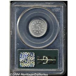 <B>1878<5C> PR67 PCGS.</B></I> The second 8 in the date is recut within the lower loop. Sensational quality in a '78 Shield Nickel, a proof-only issue that was issued in substantial enough numbers to be obtainable and affordable in grades up to and including PR65. This example shows partial reflectivity for an often shallowly mirrored date and is delicately toned in silver-gray hues. A few microscopic carbon specks are seen on the reverse under close examination. Population: 13 in 67, 0 finer (3/04). <BR><BR><B>Important notice:</B> Heritage usually auctions material at the rate of 200-250 lots per hour. On some occasions eBay Live bid software or the Internet may not be able to keep up with the pace of the auction. We recommend placing a realistic absentee bid now as insurance to avoid disappointment. Occasionally the auctioneer may eliminate or reject an eBay Live bid, and the auctioneer may also reopen a lot after the close of the eBay live bidding (usually because we missed an audience bid), and may reject your bid even if it shows you as the winning bidder. By bidding via eBay Live, you agree that Heritage may award the lot to another bidder at its sole discretion under the circumstances described above or any other reasonable circumstances. Since eBay bids are not shown to us until we open the lot on the floor, we treat those bids just like floor bids. In most cases the floor responds before the eBay bid is presented to us, due to Internet lag time, so for consistency we have made it a policy that floor bids are always considered first over tie eBay live bids. Also please note that all Heritage lots purchased through eBay Live carry a 20% Buyer's Premium. Please make sure you read the Terms and Conditions before you bid.